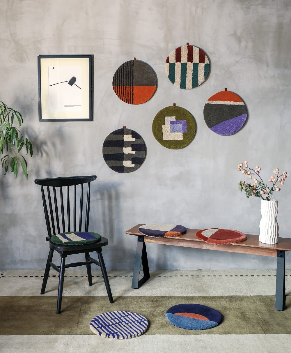 100%高級ウールを用いたオリジナル優厚絨毯「pell」シリーズから、チェアパッドの新作10柄が仲間入り。