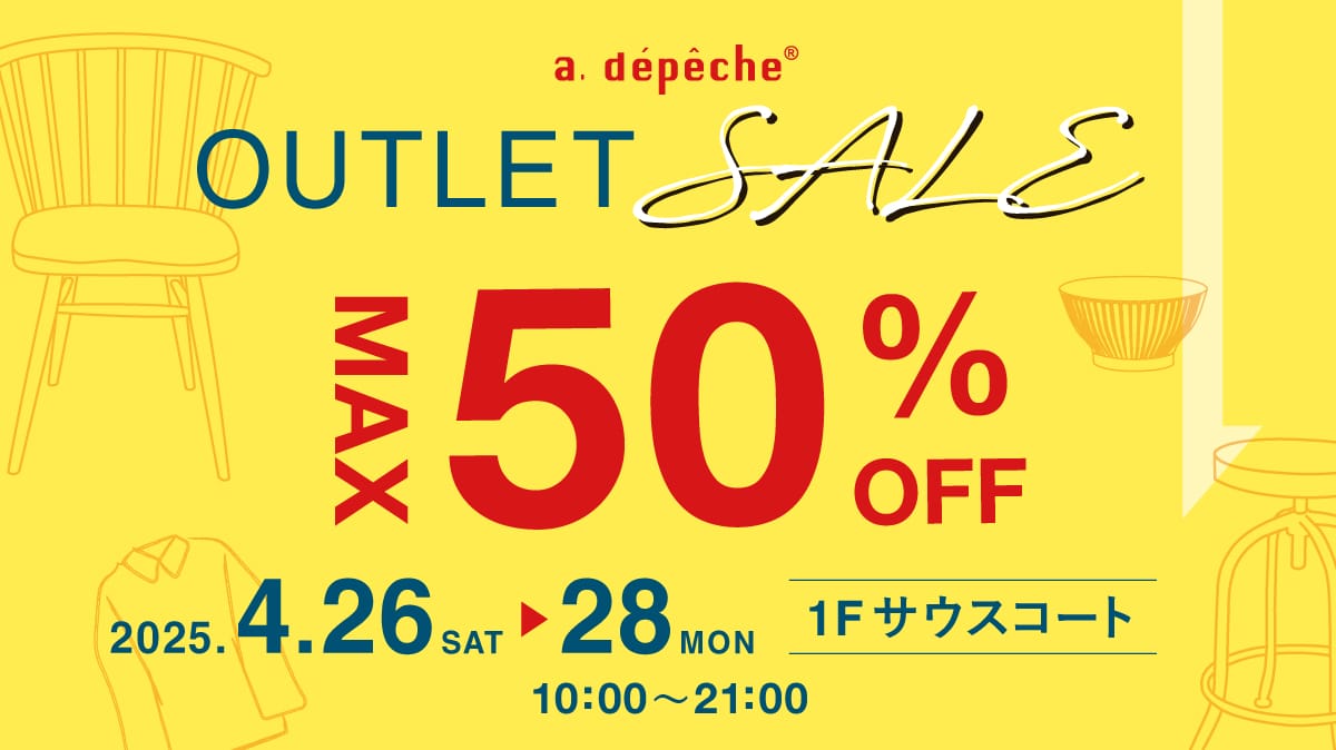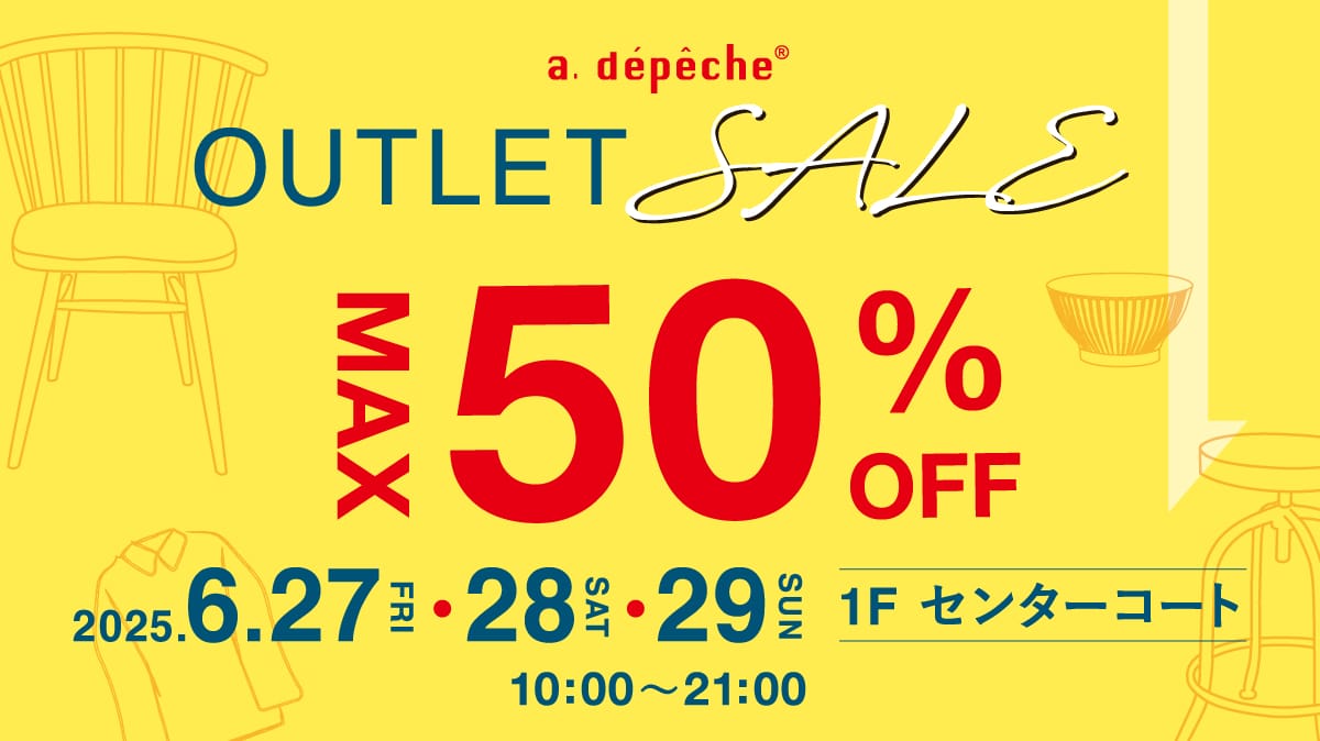 event 特別価格セールのお知らせ 2025.12.03 event ソファ&ラグイベントのお知らせ 2025.12.03 event 冬物アパレル20%OFF 2025.12.08 event 【名古屋則武店】アウトレットセール開催! 2025.12.05 event まだ間に合う!年内配送 2025.12.05 pick-up あったかアイテム特集 2025.12.01 event クリスマスセールのお知らせ 2025.11.28 event 【京都八条店】15周年祭開催のお知らせ│a.depeche 2025.11.28