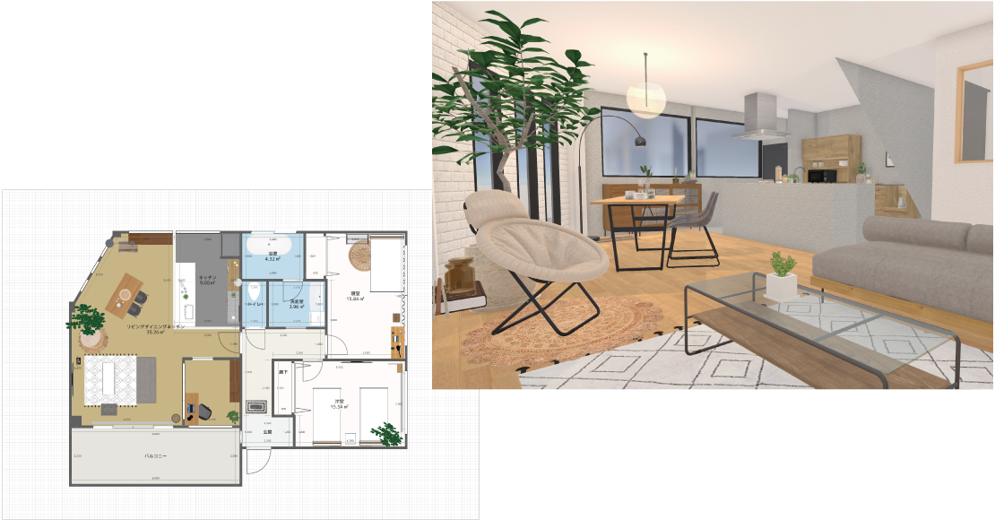 - 3Dシミュレーターでお部屋が出来上がり次第