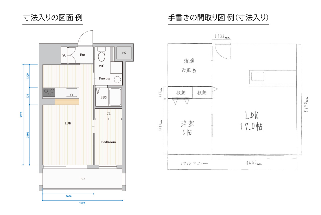 - 間取り図がない場合は、お部屋の形や寸法が記載された手書きのものでも構いません。