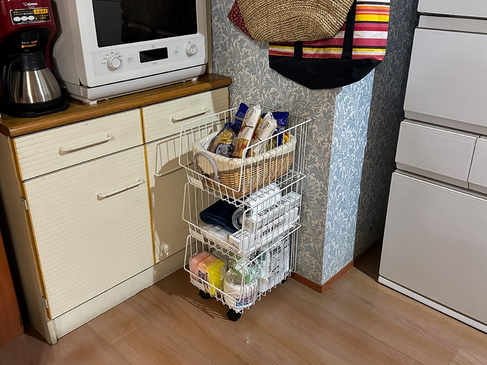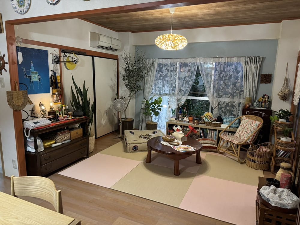 主人公の自宅セットに、a.depecheでも人気の「ブロック マルチ ザブ オットマン マクラメ エンブロイダリー ミックス」「バスケットシェルフ 3点セット」「ロッタ ラタン ミラー フルール」を採用いただきました。