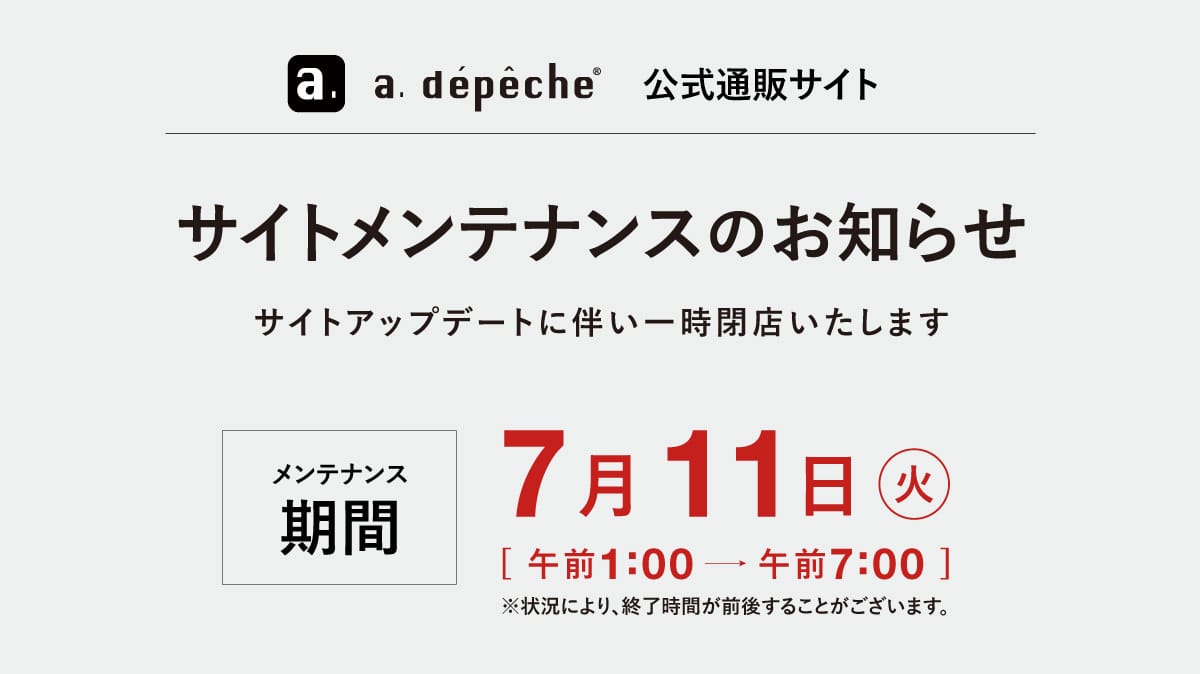 event 【ららぽーと海老名店】スペシャルプライスセールのお知らせ 2025.11.22 event 【ららぽーと堺店】3周年祭開催のお知らせ 2025.11.16 event BLACK FRIDAYのお知らせ 2025.11.13 event 【アウトレットセールのお知らせ】イオンモール北大路 2025.11.04 pick-up a.depecheが提案する冬の風物詩 -こたつ- 2025.11.04 event 【名古屋則武店】周年祭のお知らせ 2025.10.17 event 【ららぽーと富士見店】周年祭のお知らせ 2025.10.11 event 【こたつフェア】開催のお知らせ 2025.09.24