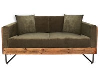 ヴィンテージ加工されたパイン無垢材に華奢なスチールワークでスタイリッシュなデザイン性も保ったローソファーです。