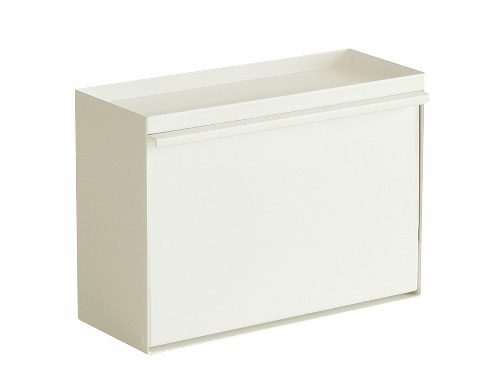 フラップ式扉で前に大きく開くので、不織布製のマスクだけでなく、布マスクや小物なども収納できます。
