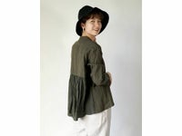 さりげないバックギャザーのリネンシャツ。