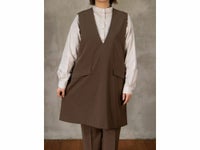 シンプルな形と素材感が、洗練されたスタイリングに仕上げてくれるベストです。