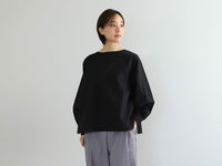 鎖骨が出るか出ないかの程よいボートネックなので、長めのネックレスとも相性抜群。