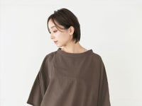 裾に紐の付いたバルーン形状を楽しむプルオーバー。