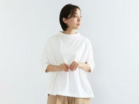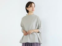 上品なモックネックと広がったスリーブが素敵なプルオーバー。