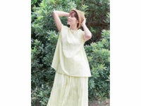 同シリーズのスカート「crinkle gather skirt(クリンクル ギャザー スカート)」と揃えれば、上下で着られるセットアップに。