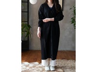 さっと羽織っても、ワンピースのようにボタンを締めて着ても存在感のあるガウン。