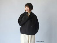 後ろ身頃のステッチが全体にメリハリを出し、切り替えのないフードがカジュアルにも綺麗めにも見せてくれる万能アイテムです。