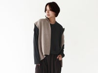 首元もすっきりとしたシンプルなUネックなのでベストなどのレイヤードもお楽しみいただけます。