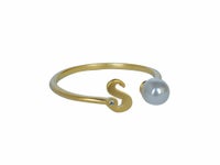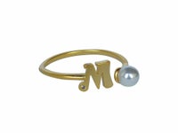 イニシャルとパールがアクセントになった、可愛いイニシャルモチーフリング。