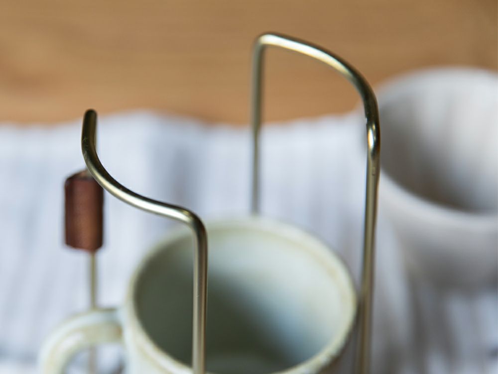 ゴールドの丸ワイヤーで作ったコーヒードリッパー用スタンド。