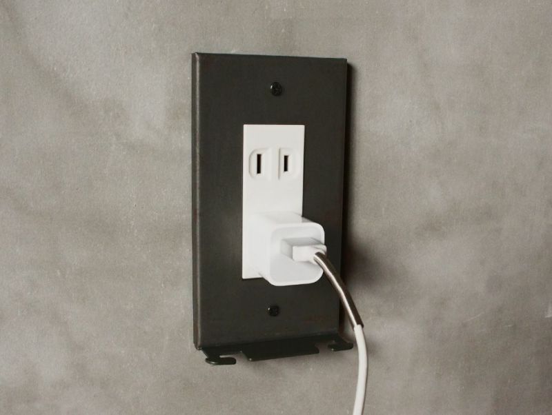 アイアンの質感がお部屋の雰囲気を演出してくれるだけでなく、コンセント周りに散乱するコード類を整理することもできるカバーです。
