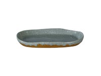 ブラウンの大地にブルーの釉薬が雪解け水を表現し、まるで冬の澄み切った空気を感じられるような、優しい色合いです。
