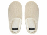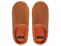 足元に柔らかさと温もりを届けるケーブルニット素材のスリッパです。