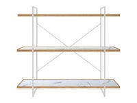 メラミン板×無垢材×スチールの素材の掛け合わせがおしゃれなオープンシェルフ。