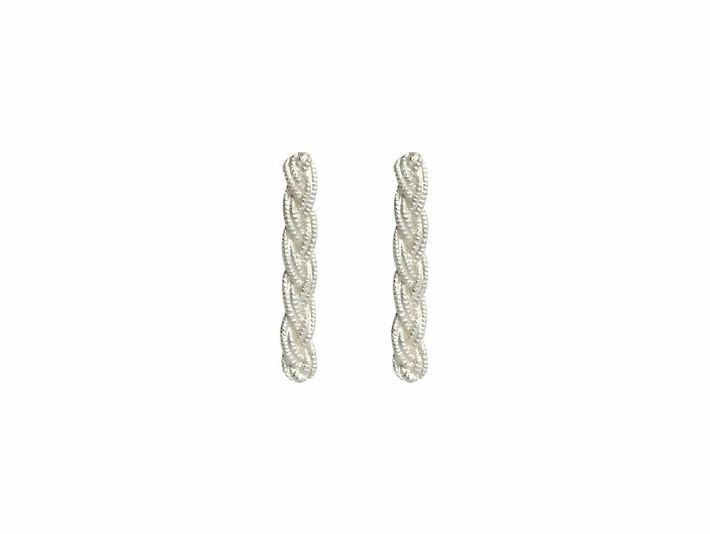 1つのロープが重なりあい、丁寧に編み込まれたデザインのピアス。