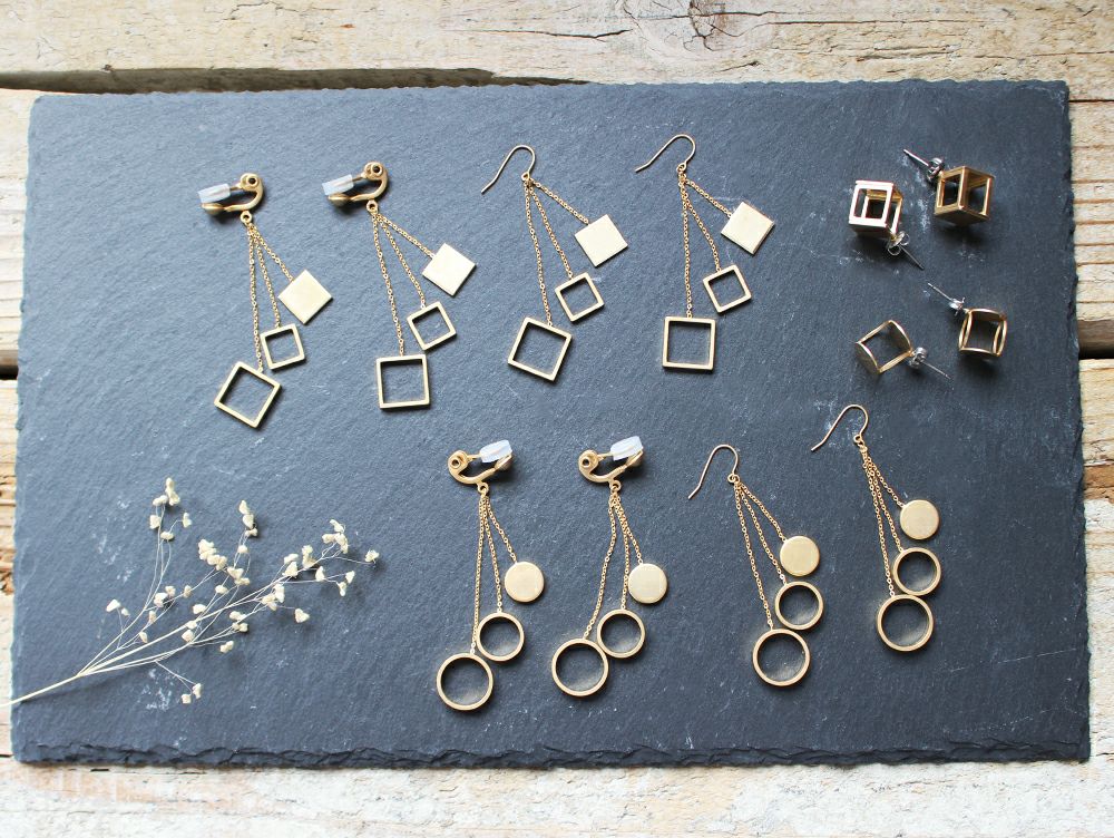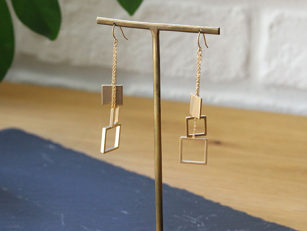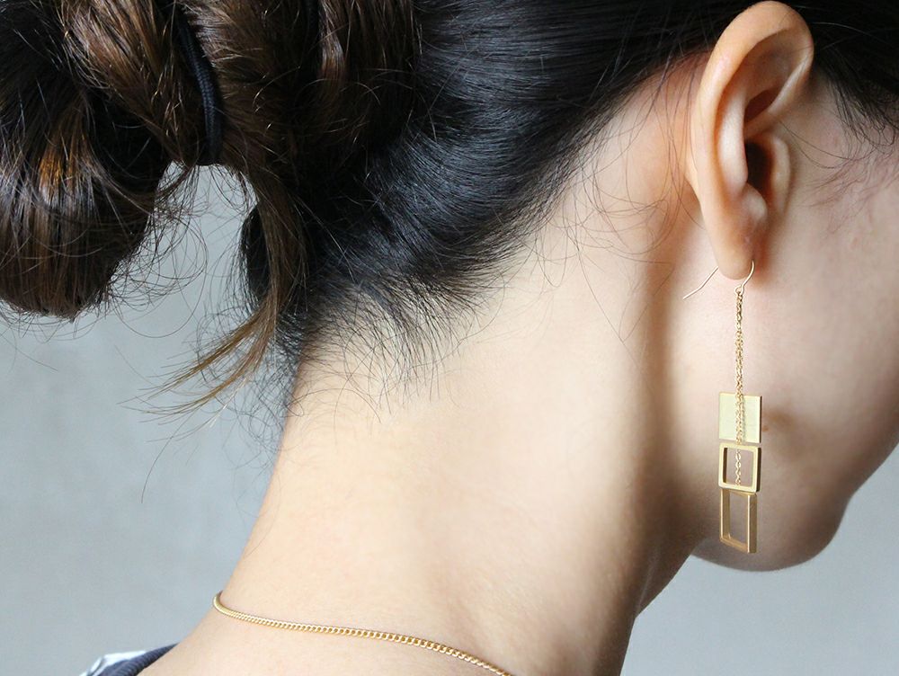 四角が織りなす、シャープさのあるピアス。
