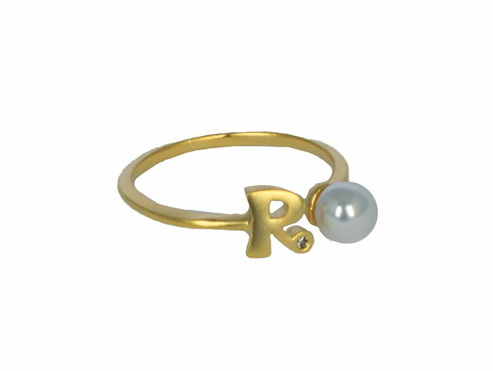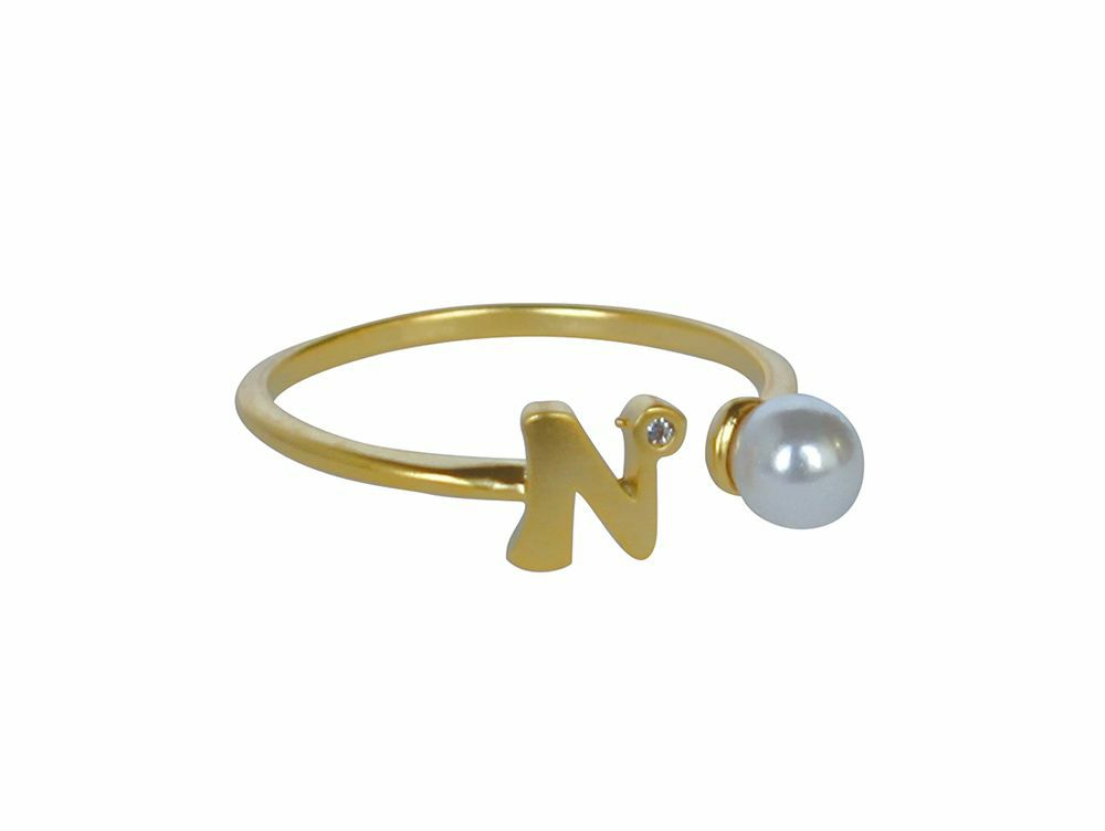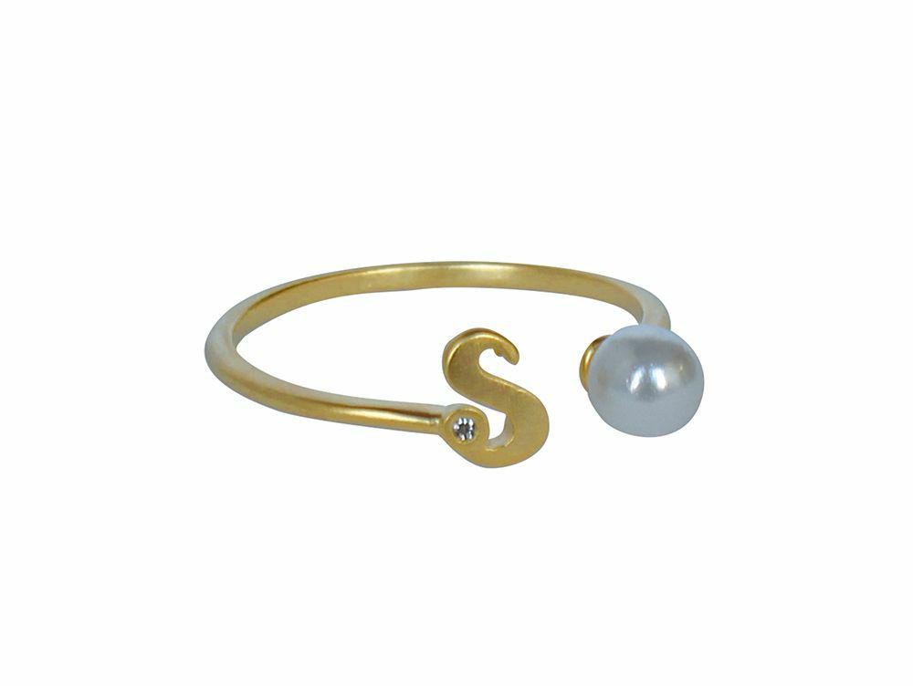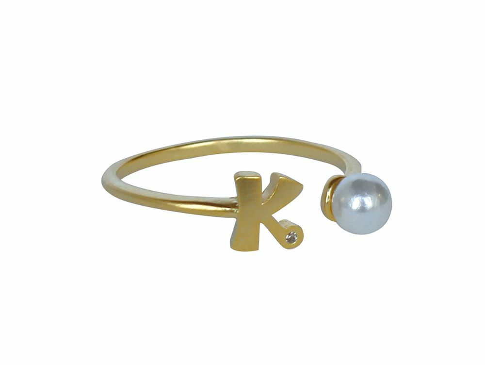 イニシャルとパールがアクセントになった、可愛いイニシャルモチーフリング。