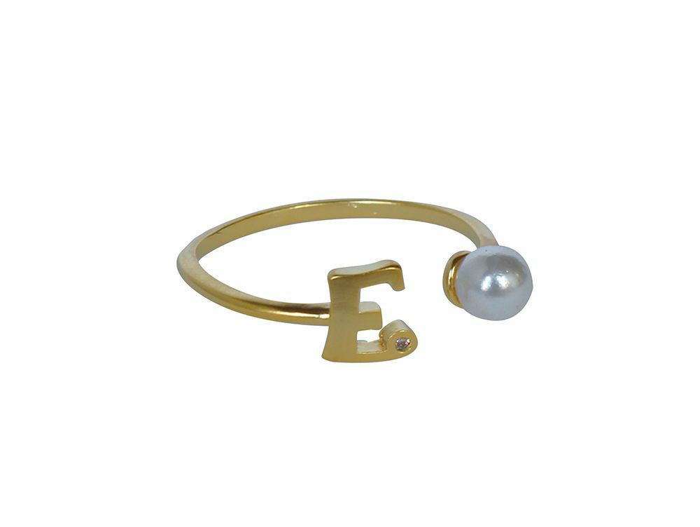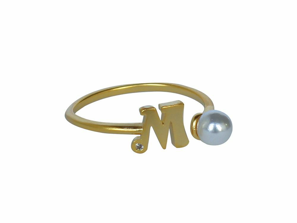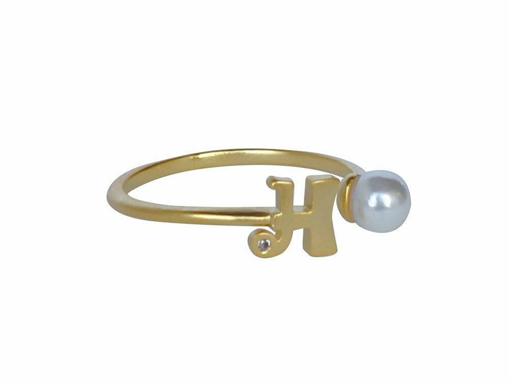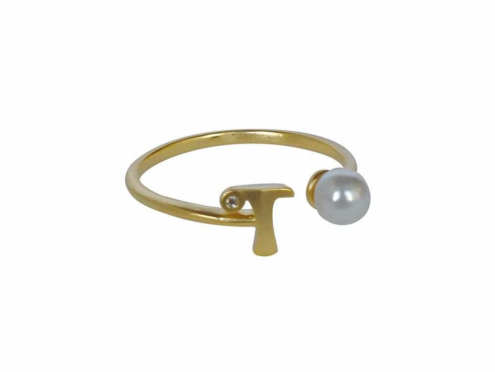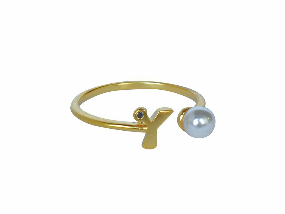 イニシャルとパールがアクセントになった、可愛いイニシャルモチーフリング。