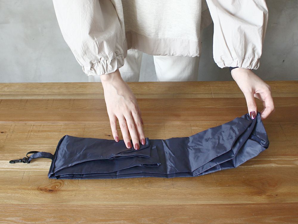 (2)収納サイズにたたみゴムでくるんととめて下さい。