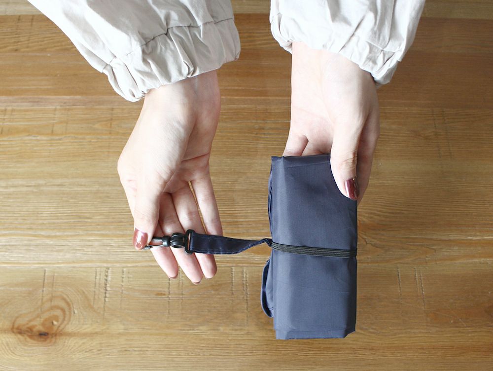 エコバッグを畳んだあと、ゴムでさっと収納できるのも嬉しいポイント。