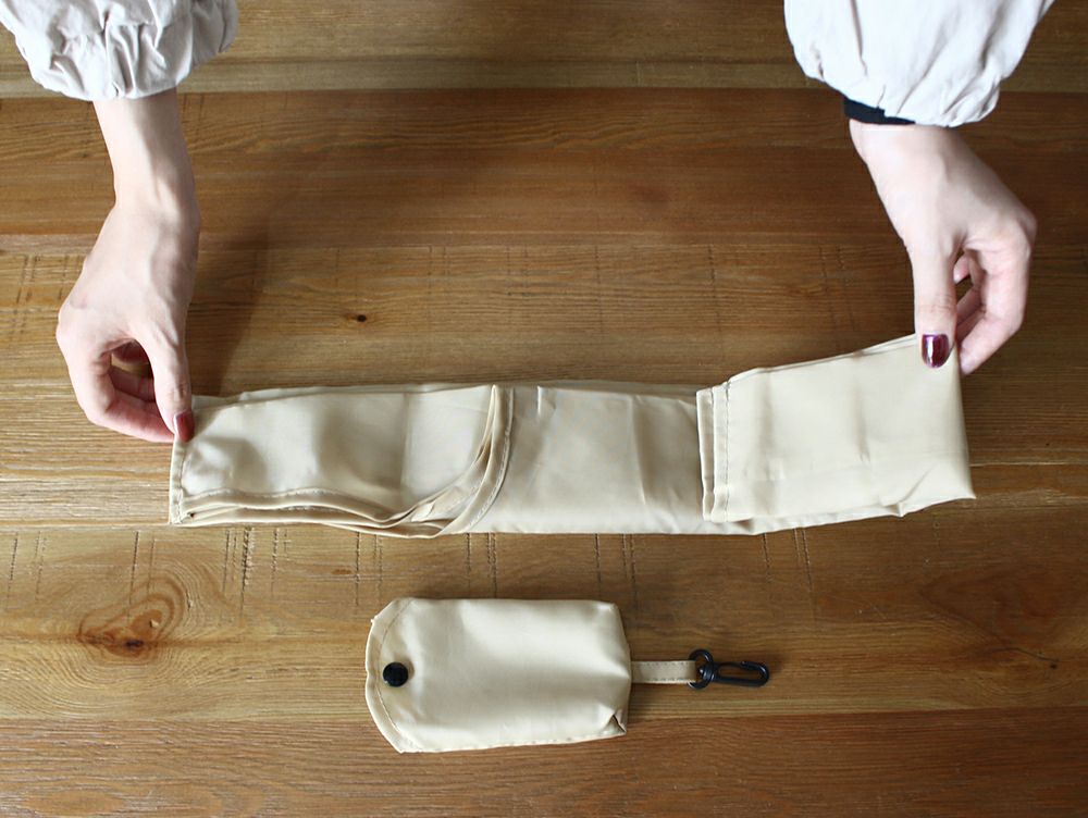 (2)収納サイズに畳んで袋に収納してください。