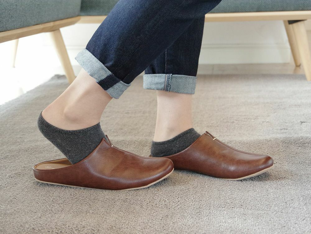 シンプルな外観にしっとりとした履き心地が特徴の「歩く」ことを考えたスリッパ。