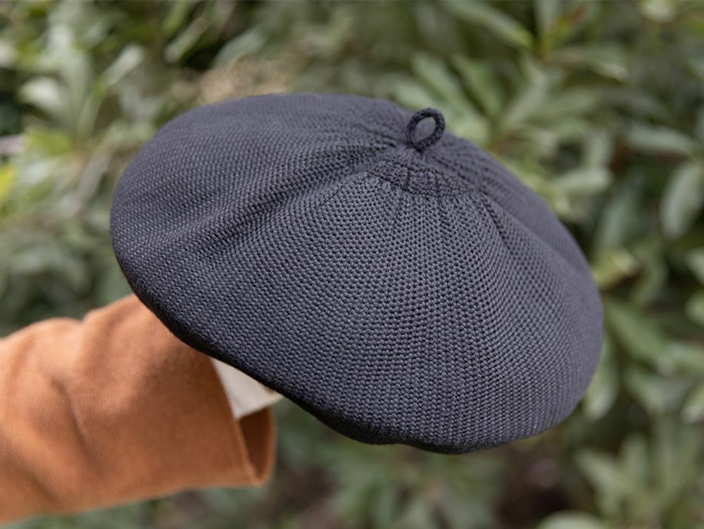 リネンライクなサマーニットのベレー帽で、通気性が良く涼しくかぶれます。