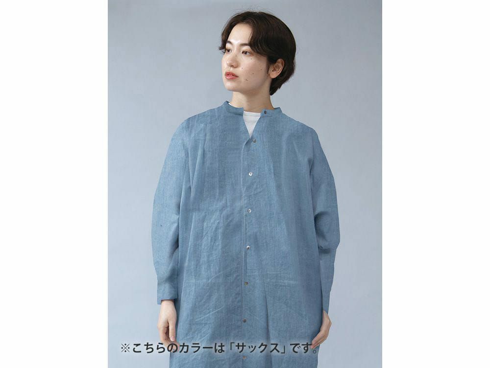 MidiUmi band collar shirt OP [取扱終了]ミディウミ シャツ バンド カラー シャツ ワンピース