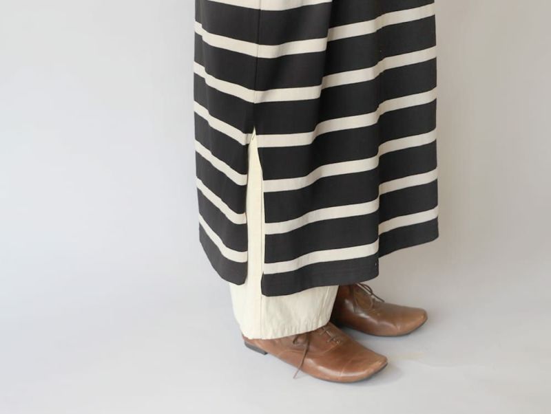 足元の両サイドはスリット入りで動きやすく、1枚で着ても、デニムやベスト等と合わせたレイヤードコーデにもおすすめです。