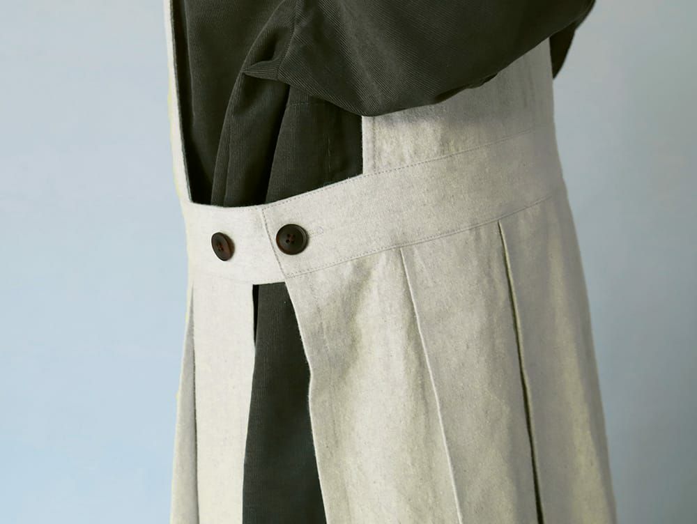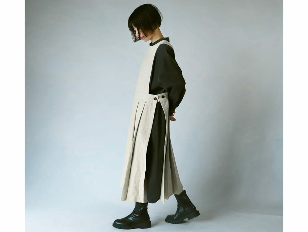 エプロンのような形状なので、ボリューム袖を重ねても快適に着用いただけます。