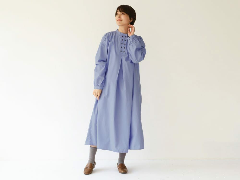 W button henry neck onepiece Wボタンヘンリーネックワンピース