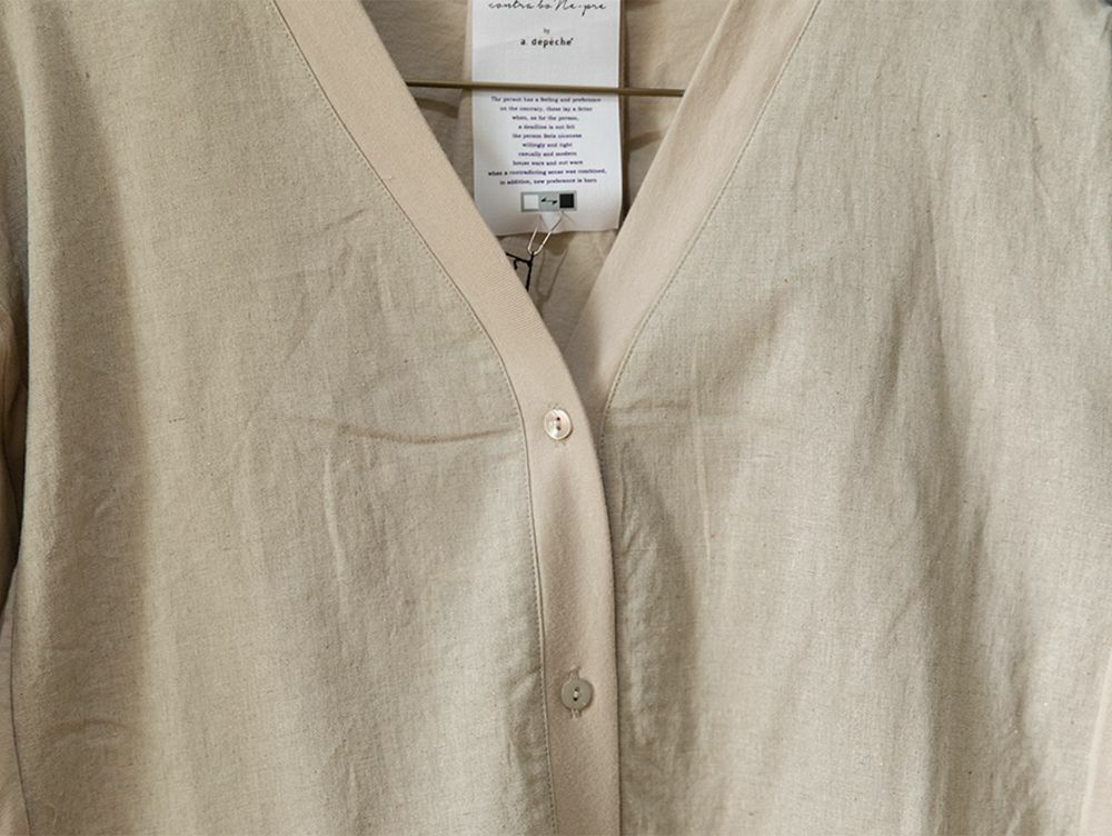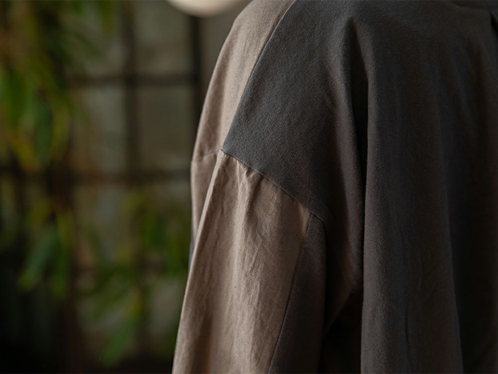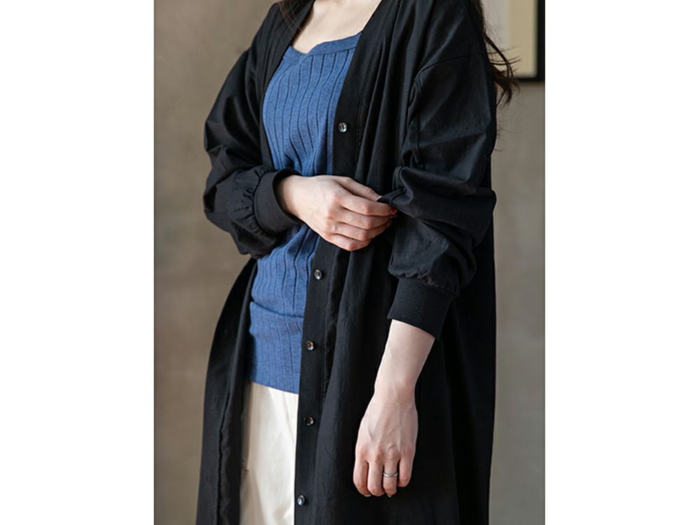さっと羽織っても、ワンピースのようにボタンを締めて着ても存在感のあるガウン。