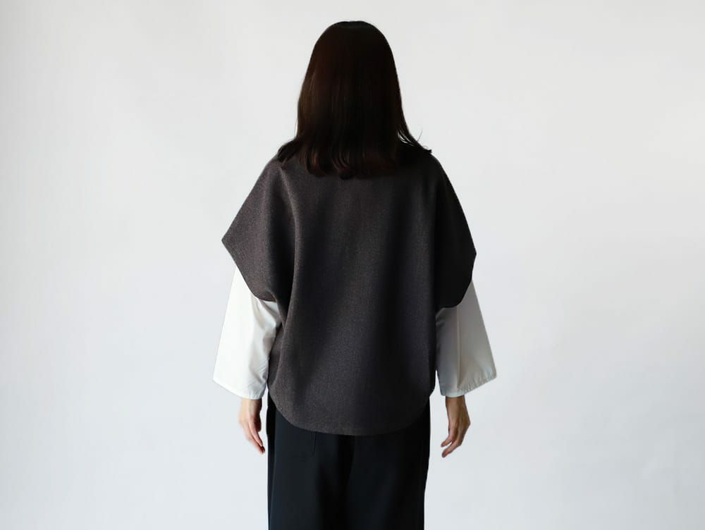 脇のラインが広く開いていて、生地自体の厚みを抑えているため軽やかで、重ね着してもごわつくことなく快適です。