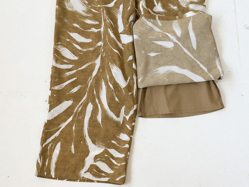 自然を意味する「植物・土・水・風」をそれぞれアートで表現した柄パンツ。