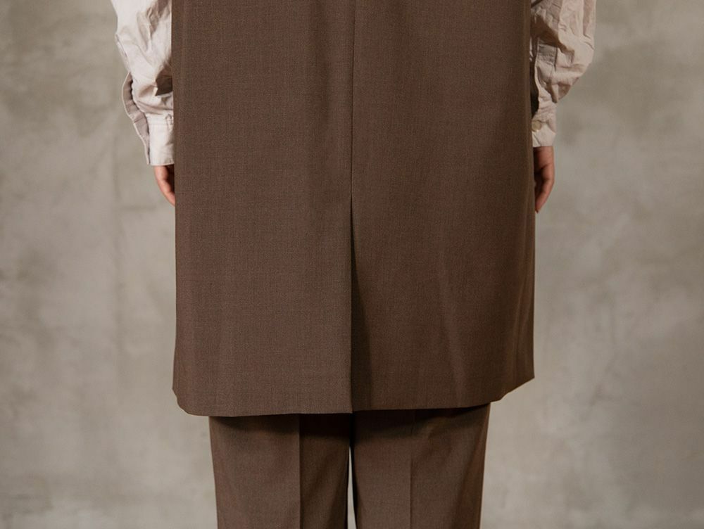 シンプルな形と素材感が、洗練されたスタイリングに仕上げてくれるベストです。