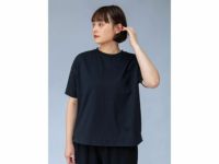 身体のラインを拾いづらい、ゆったりとしたサイズ感の1枚で使いやすいTシャツです。