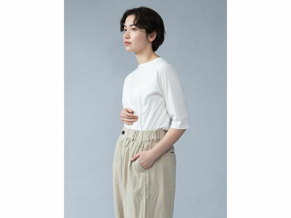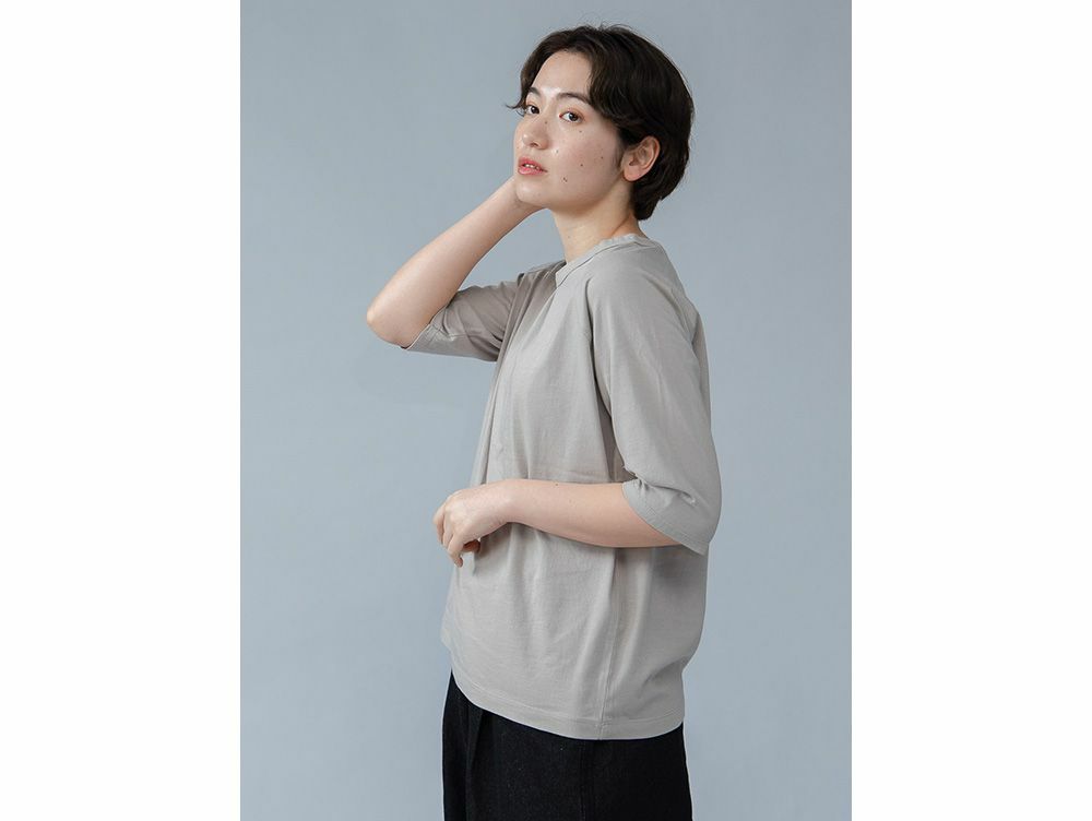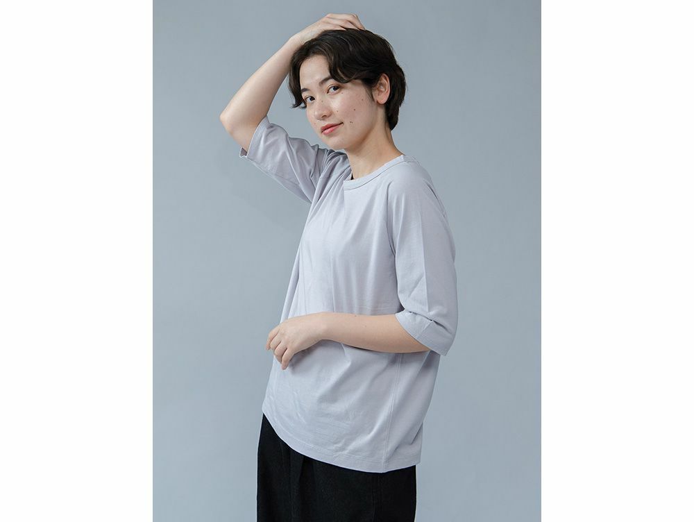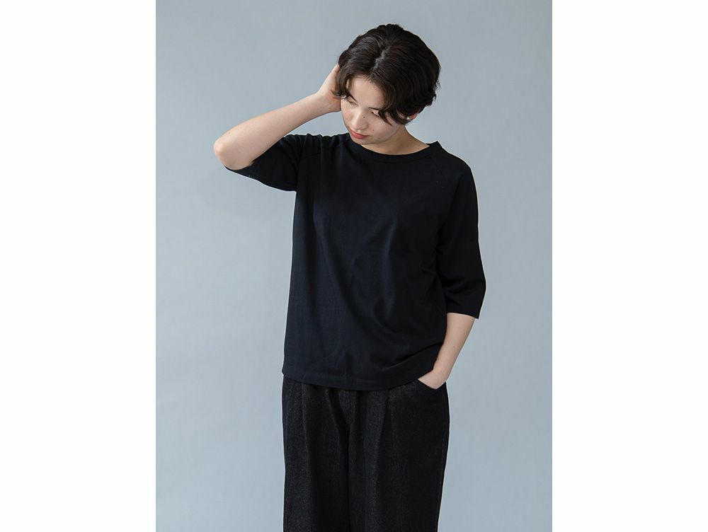 カジュアルなラグランスリーブで仕立てられたTシャツです。