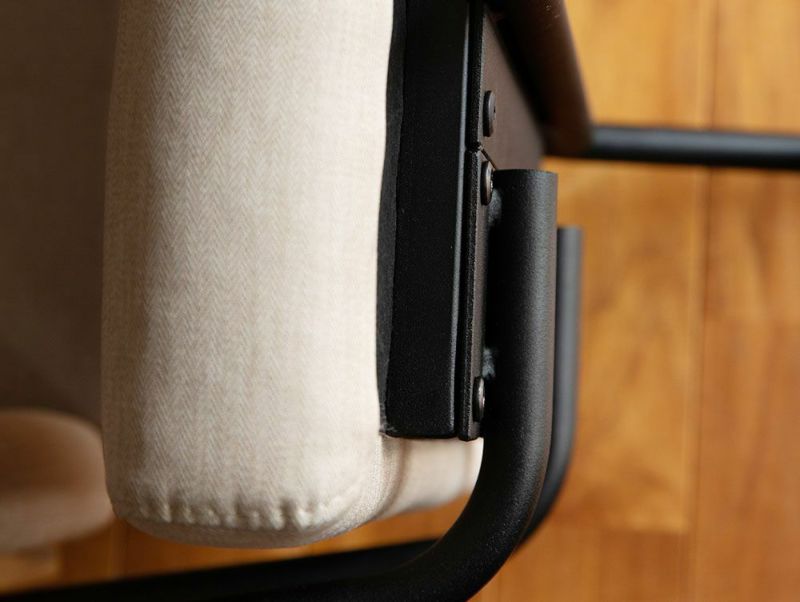 a.depecheらしい、アイアンと背面の木目・ファブリックの素材を使用していますが、今までのソファよりもよりモダンなデザインで、