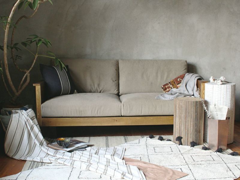 ソファ本体の無垢の木材やスチール脚は使えば使うほど味わいが増すので、