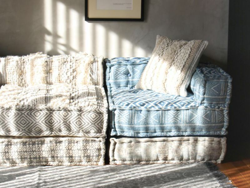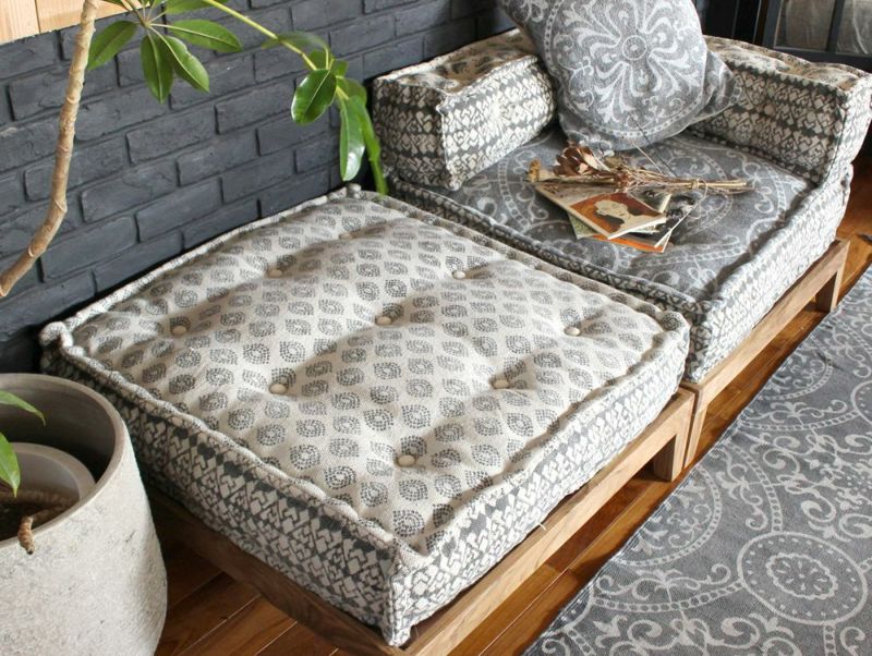 背もたれがないので、オットマンとして別売りのウッドベースやソファと組み合わせてカウチソファーを作れます。