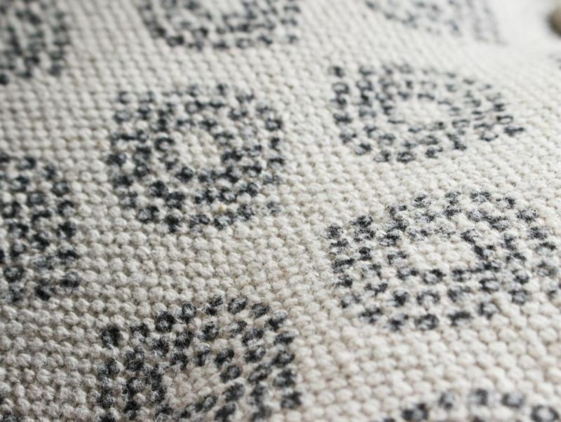 角々とした直線的なブロック型と、複雑に織り込まれた厚手のファブリックの丸みがあいまって独特な表情に。