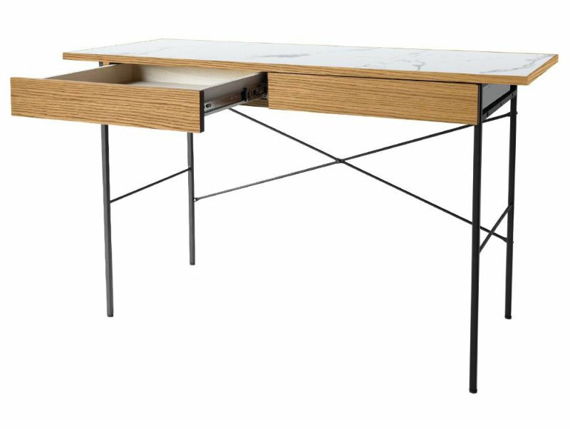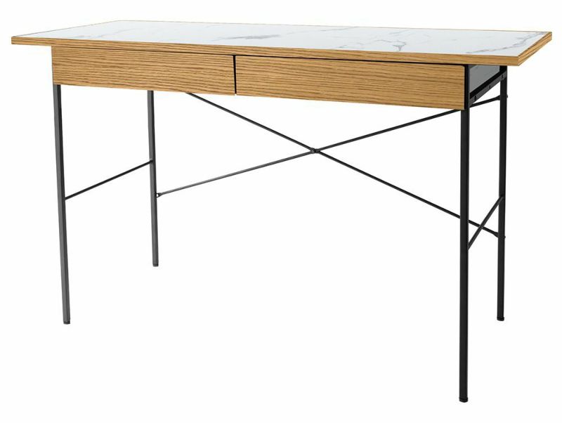 アデペシュらしい細身のスチールフレームに、四方をオーク無垢材で囲まれた表情豊かなメラミン素材が