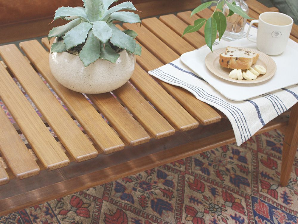 チーク無垢材をふんだんに使い、重量感とナチュラルモダンを兼ね備えています。