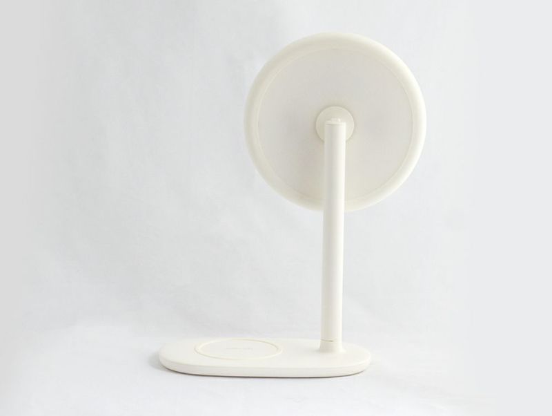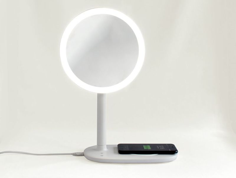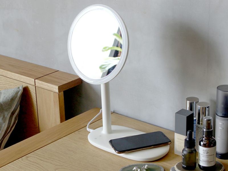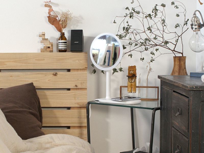 Qi内蔵で置くだけ充電が可能に。 毎日の日常をどこでも何度でも明るく照らしてくれる万能ミラーです。