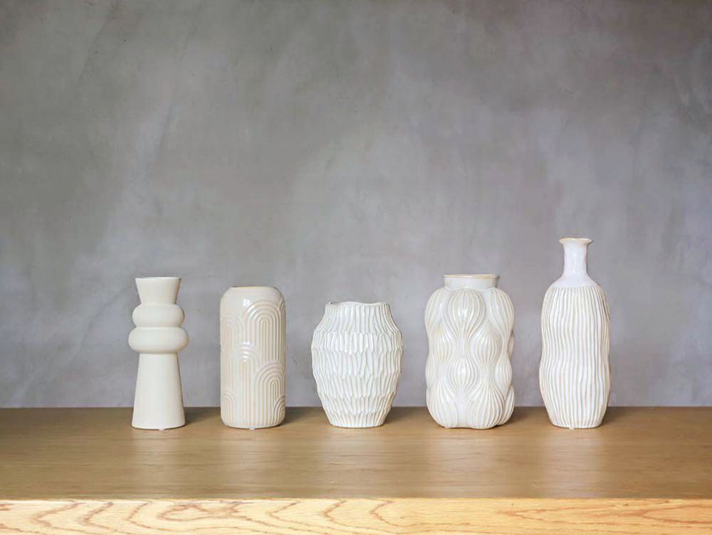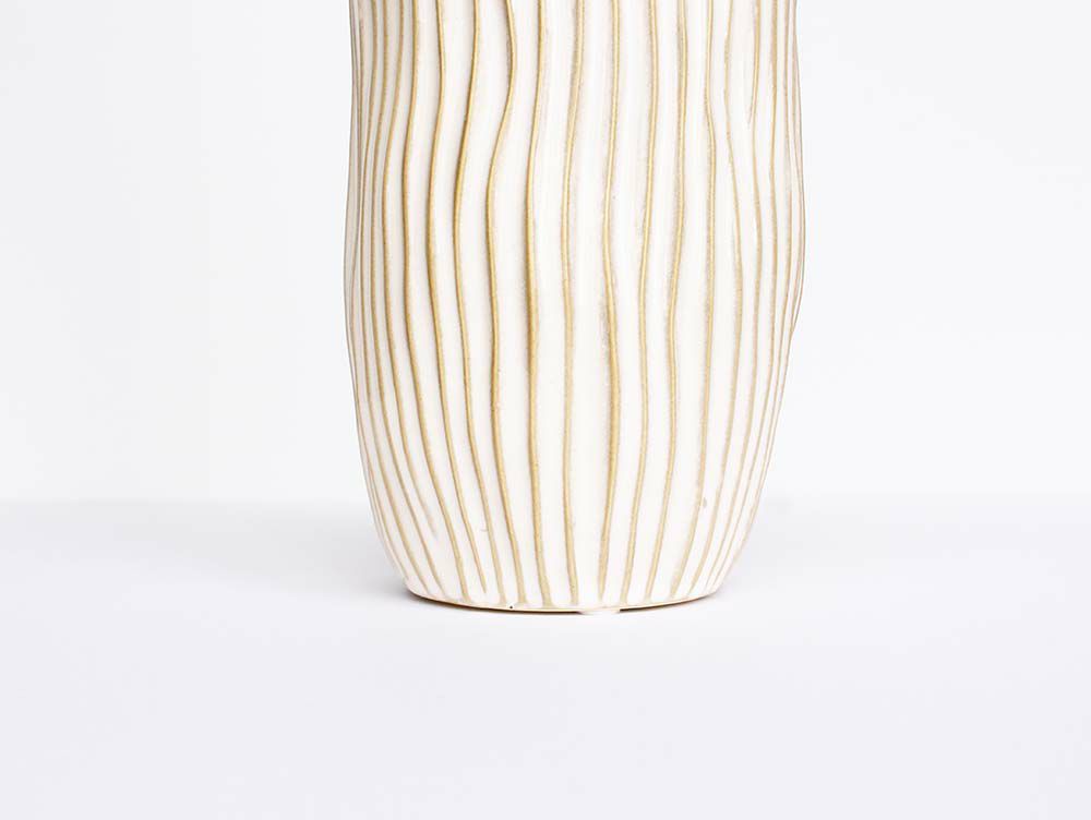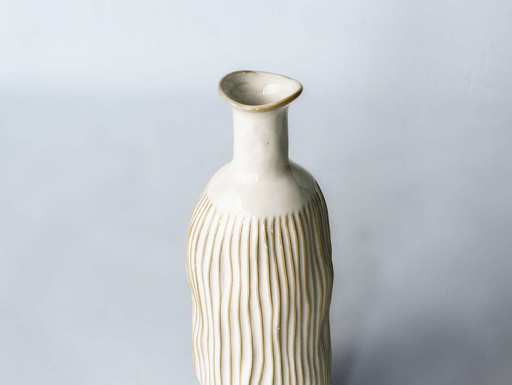 縦に走る彫刻のようなラインが特徴的な一輪挿し。
